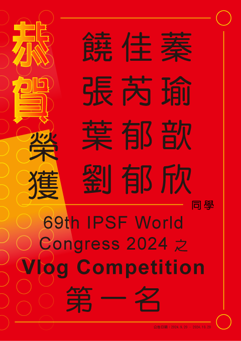 榮獲69th IPSF World Congress 2024之Vlog Competition 第一名