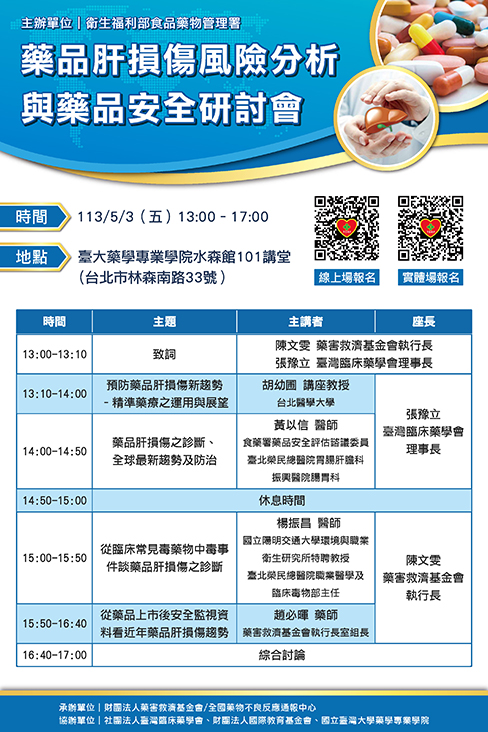 【活動訊息】5/3(五)藥品肝傷害風險分析與藥品安全研討會