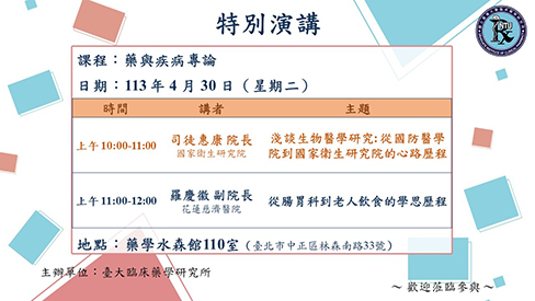 臺大藥學院首頁 > 消息與公告