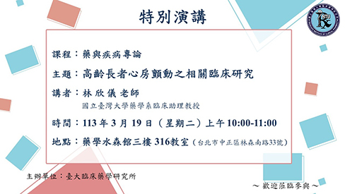 【特別演講】高齡長者心房顫動之相關臨床研究|林欣儀老師