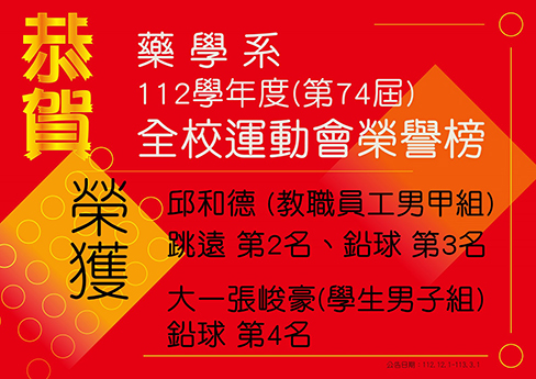 【恭賀】112學年(第74屆)全校運動會榮譽榜