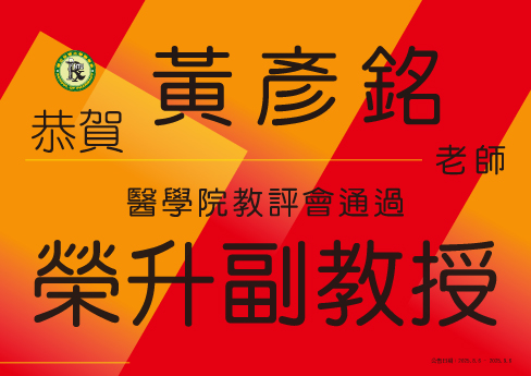 【恭賀】黃彥銘老師醫學院教評會通過榮升副教授