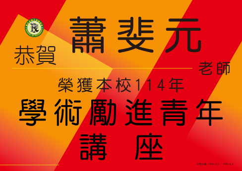 【恭賀】蕭斐元老師榮獲本校114年「學術勵進青年講座」