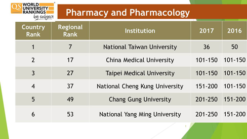 NTU Pharmacy and Pharmacology ranked 36th in 2017 QS world university rankings by subject