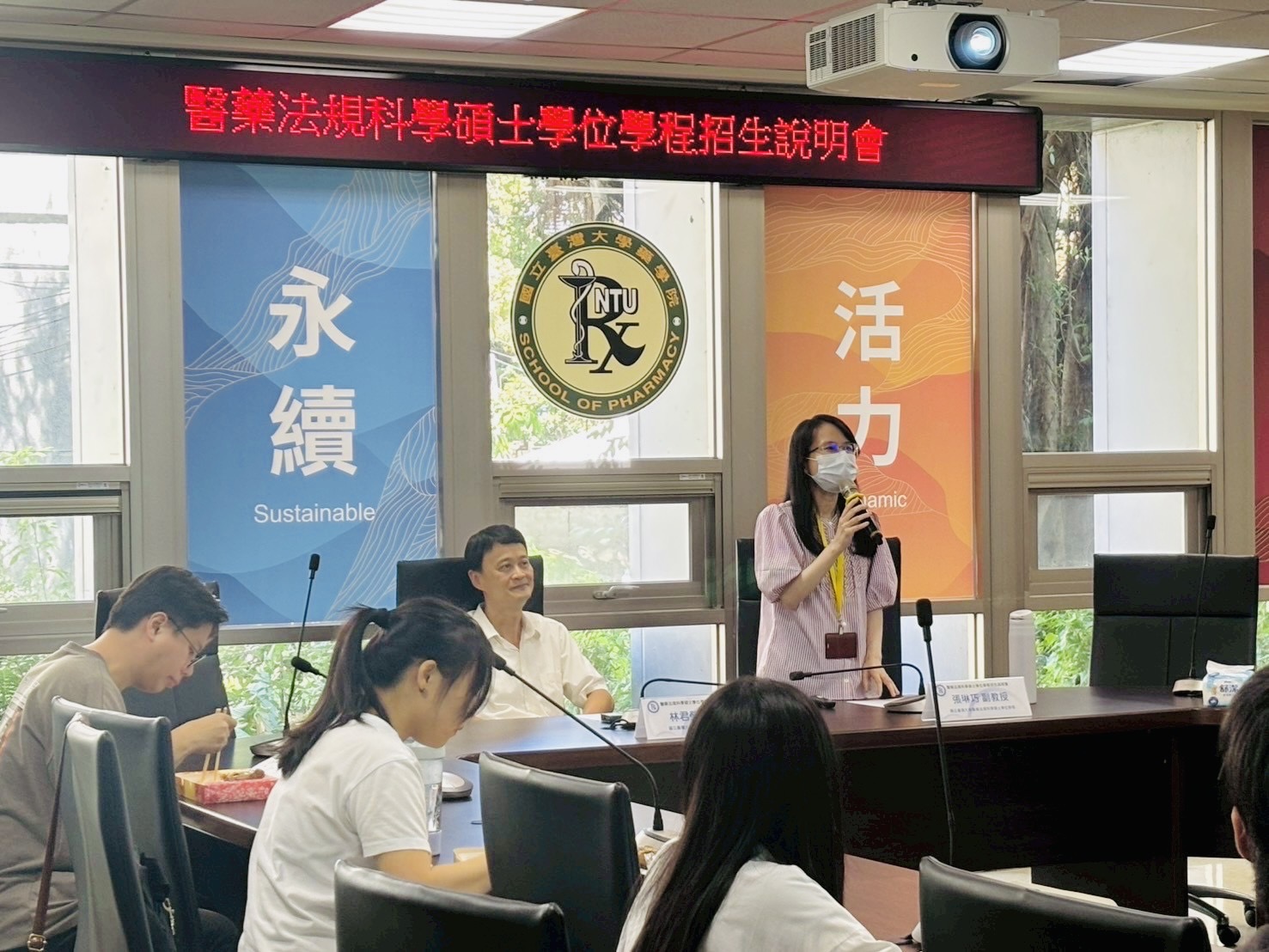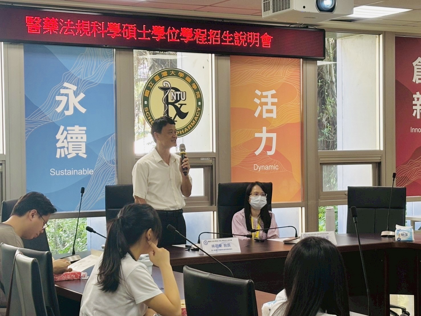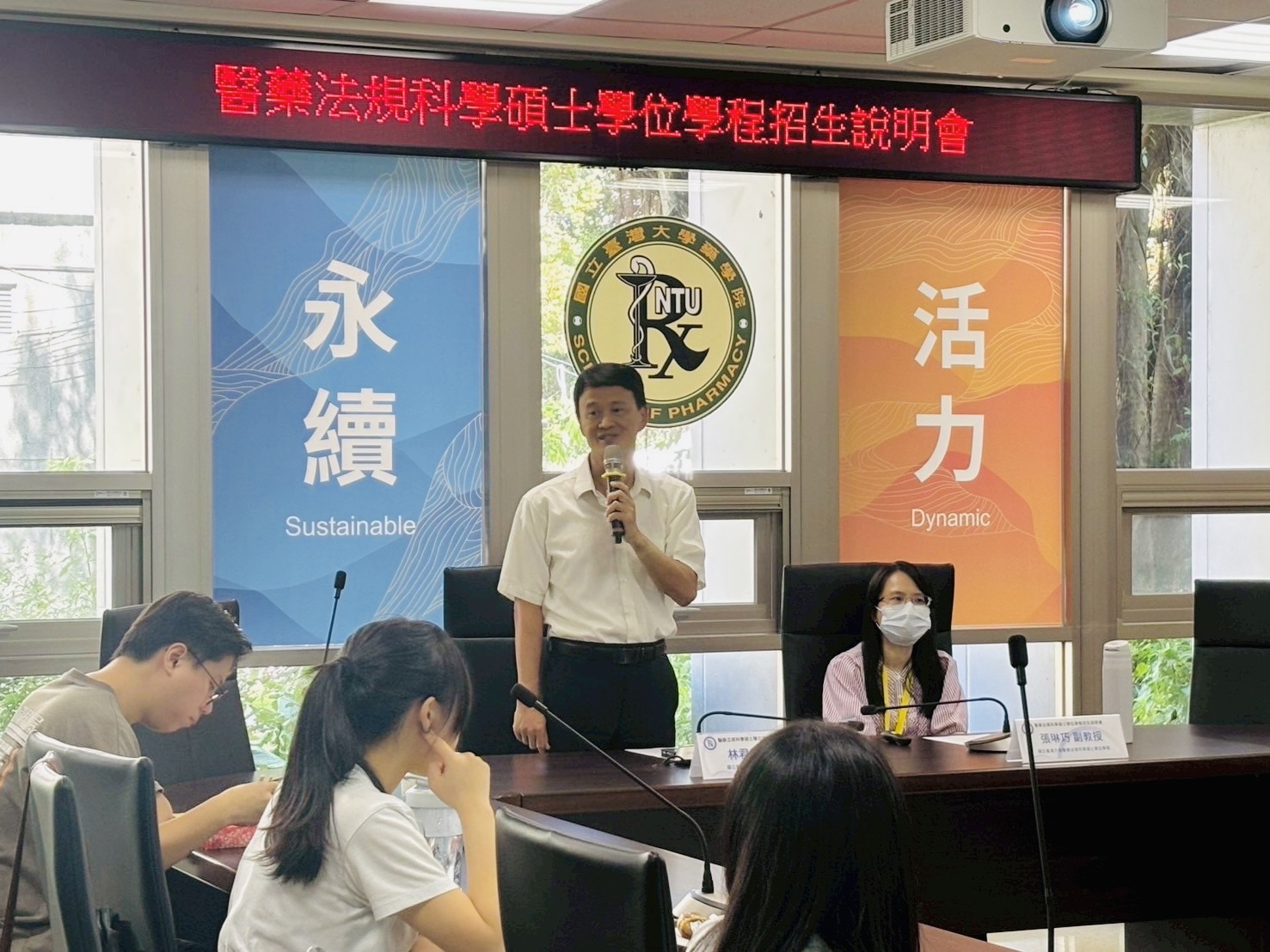 招生說明會於當日中午12時30分準時開始,由臺大藥學專業學院林君榮院長致歡迎詞揭開序幕,對現場及線上共約80位的與會者表示誠摯歡迎。接著由張琳巧副教授詳細介紹本學程的創立起源、課程設計、師資陣容與職涯發展,以及本次碩士甄試及後續招生考試等相關事宜。